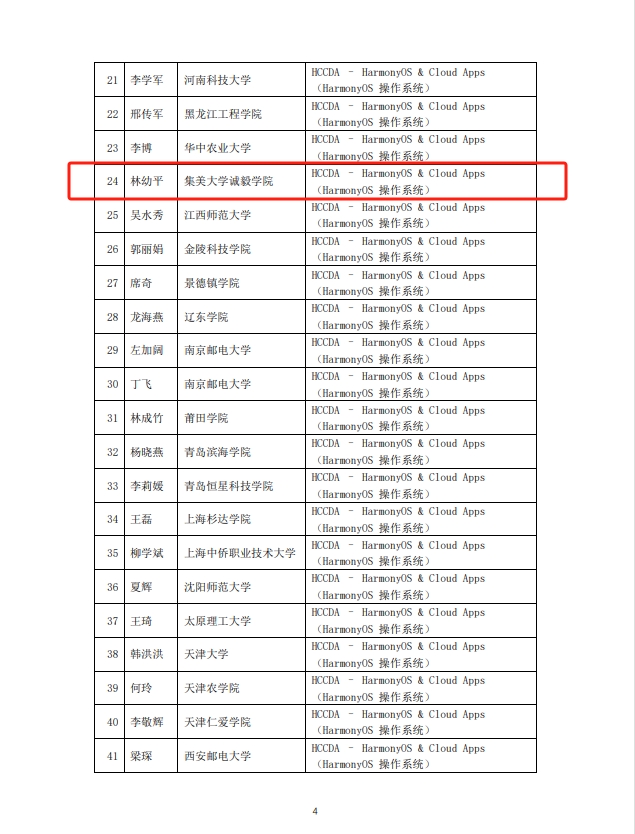近日,中国软件行业协会与信息技术新工科产学研联盟联合公布了2024年“国产软件进课堂”教学改革项目立项名单,我系教师林幼平申报的《HCCDA – HarmonyOS & Cloud Apps(HarmonyOS操作系统)》项目成功获批立项。