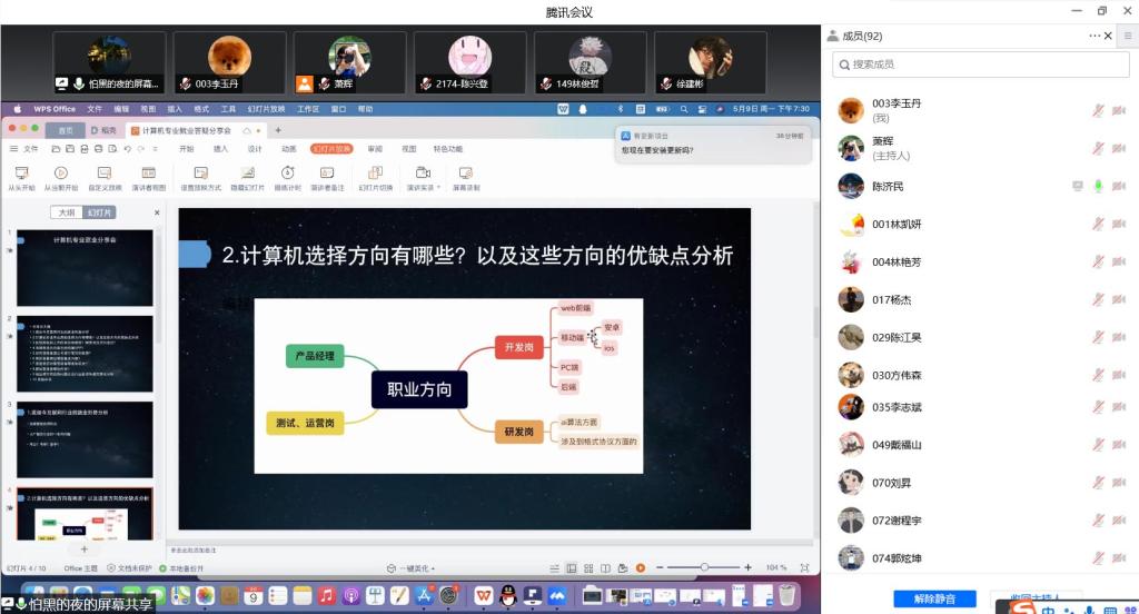 5月9日,信息工程系开展线上就业经验分享会,会议邀请应届毕业生李成溪同学(燧炻创新科技有限公司 GO后端开发工程师)和2020届校友吴健强(万兴科技集团股份有限公司 音视频开发工程师)主讲,专升本2021级全体同学参加此次会议。
