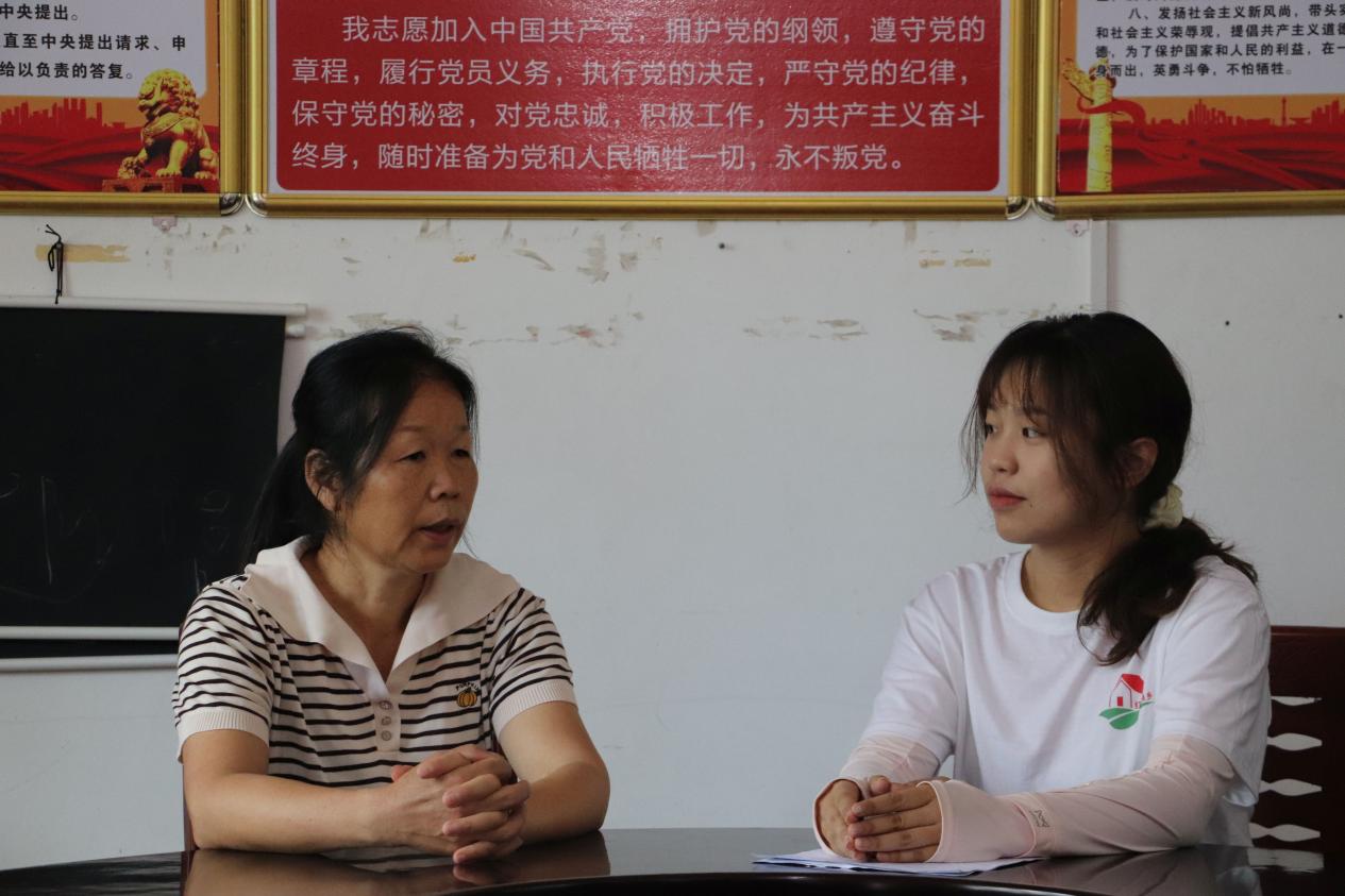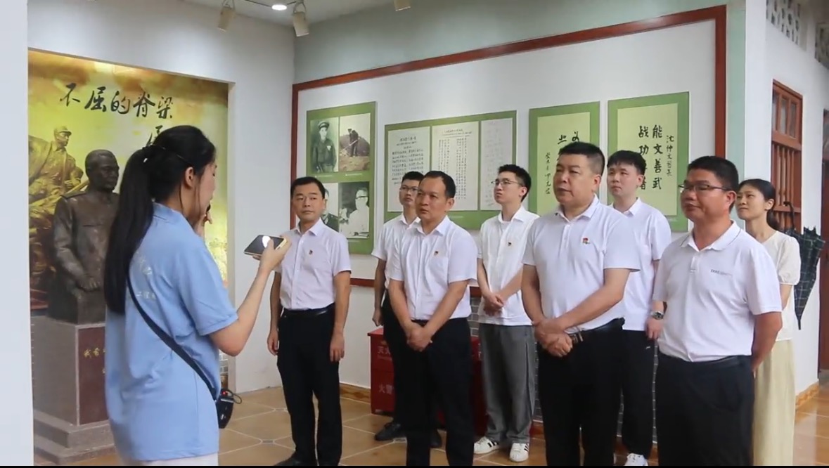 实践队还走访湖山乡多个革命基点村,与村书记围坐交流,围绕革命遗址保护、红色资源活化利用等议题深入探讨。从村民对文化传承的期盼到产业融合的现实难题,队员们在对话中体会基层治理的温度,明确了行动方向。在沈仲文纪念馆,队员黄嘉琪为当地党员干部讲解“三打象湖山”故事,共同重温烽火岁月,在互动中传承革命精神,筑牢信仰根基
